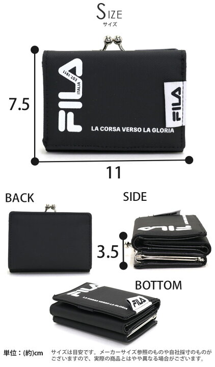 Fila フィラ がま口財布 財布 三つ折り カード収納 収納 カッコいい スポーティー メンズ レディース 男女兼用 ブラック 黒 シンプル 普段使い ギフト プレゼント メンズ 彼氏 彼女 学生 10代 ブランド メーカー ロゴ ユニーク がま口 サイフ 男性 女性 新作